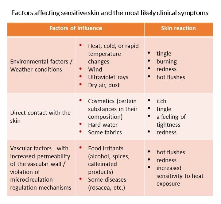 Så, undertyper av sensitiv hud kan skilles basert på utløsende faktorer, tilstedeværelse av hudsykdommer, bevaring av hudens barrierefunksjon, graden av hudens reaksjon på irritanter, osv.